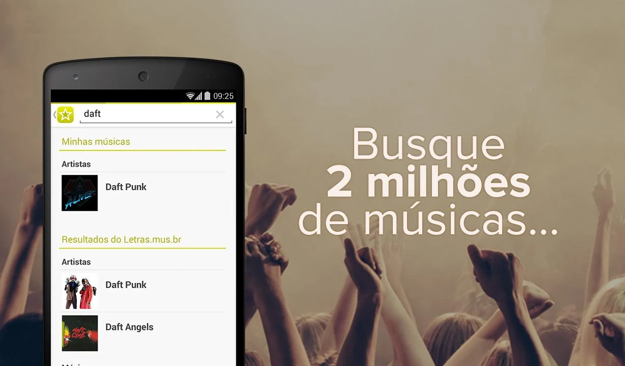 Você também pode ver letras e vídeos de seus cantores mesmo sem ter as músicas no seu celular.